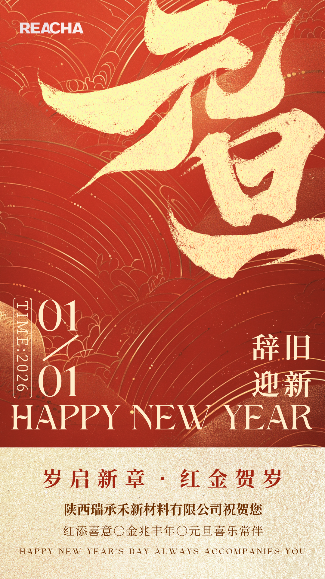 岁序常易,华章日新。在这辞旧迎新的美好时刻,陕西瑞承⽲新材料有限公司全体员工向您致以诚挚的新年问候!感谢您在过去一年中对我们的信任与支持。